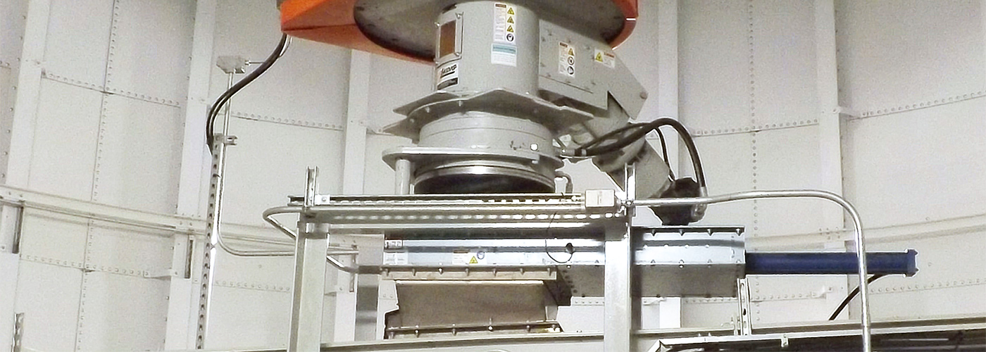 錐底倉懸臂式出倉系統利用絞龍在倉底攪動物料,以幫助倉內物料產生高效穩定的出倉流量,同時使物料先進先出